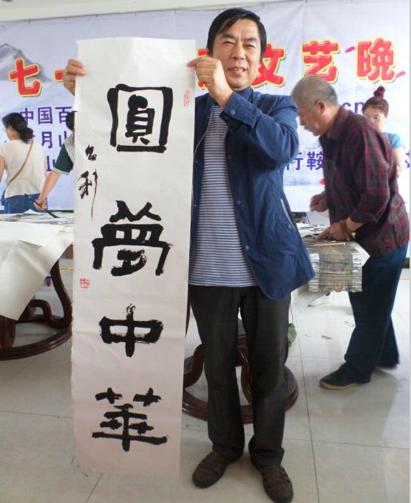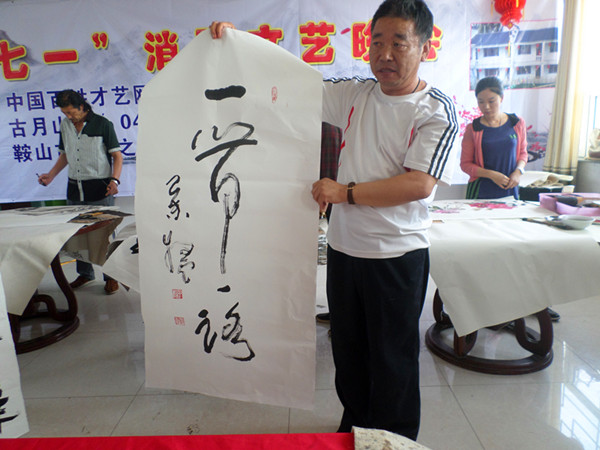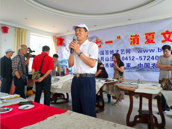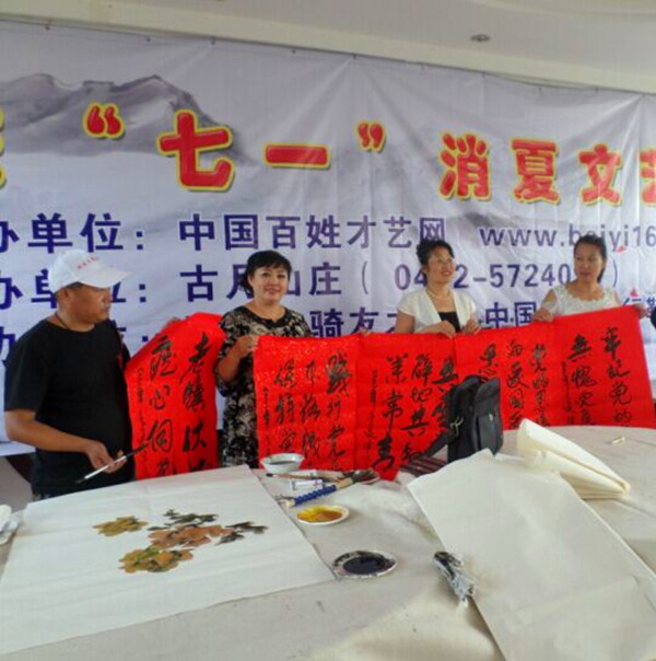為紀念中國共產黨建黨94周年,不忘中國共產黨締造的宏偉基業。2015年6月30日,百姓才藝網在遼寧省千山腳下“古月山莊”舉辦了名家書畫筆會,60多名書畫家參加了本次活動。